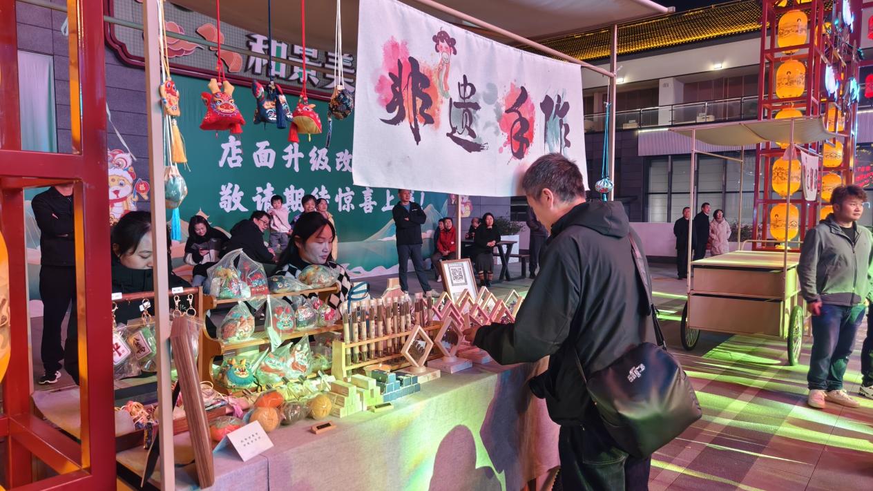 活动期间,还同步开启非遗文化市集,汇聚了剪纸、香囊制作、年画印制、草编等9类非遗技艺,让市民游客既能观赏传承人指尖的匠心,更能亲手参与体验,在动手过程中感受非遗的“手作温度”。街区内的各大商户也纷纷推出折扣优惠、联合促销等活动,进一步激发消费潜力,让大家共享文旅发展成果。