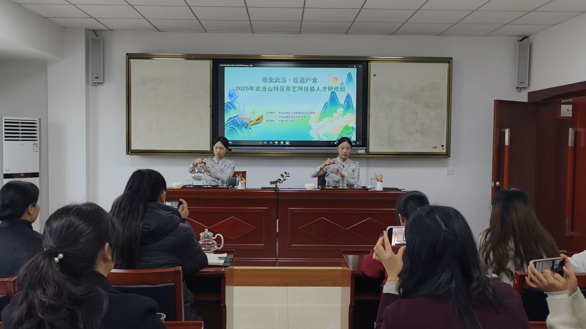 12月3日,武当山特区人社局联合文化和旅游局举办2025年茶艺师技能人才研修班。60余名景区服务人员、民宿及酒店茶艺从业者免费参加培训。