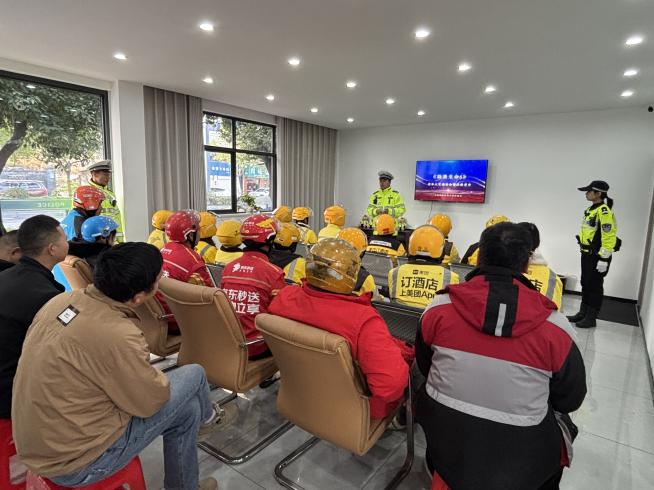 针对外卖、快递行业电动自行车使用频繁的特点,交管大队组织外卖骑手及快递员代表召开宣教会。通过播放事故警示片、讲解安全骑行规范案例,强调正确佩戴头盔、杜绝闯红灯和逆行的重要性,并让全体参会人员现场签署《电动车安全骑行承诺书》,筑牢行业交通安全防线。