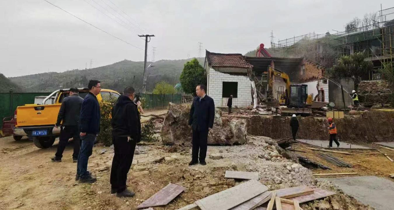 (图为武当山街道办事处及组工干部在元和观民宿三期项目现场协调解决问题)
