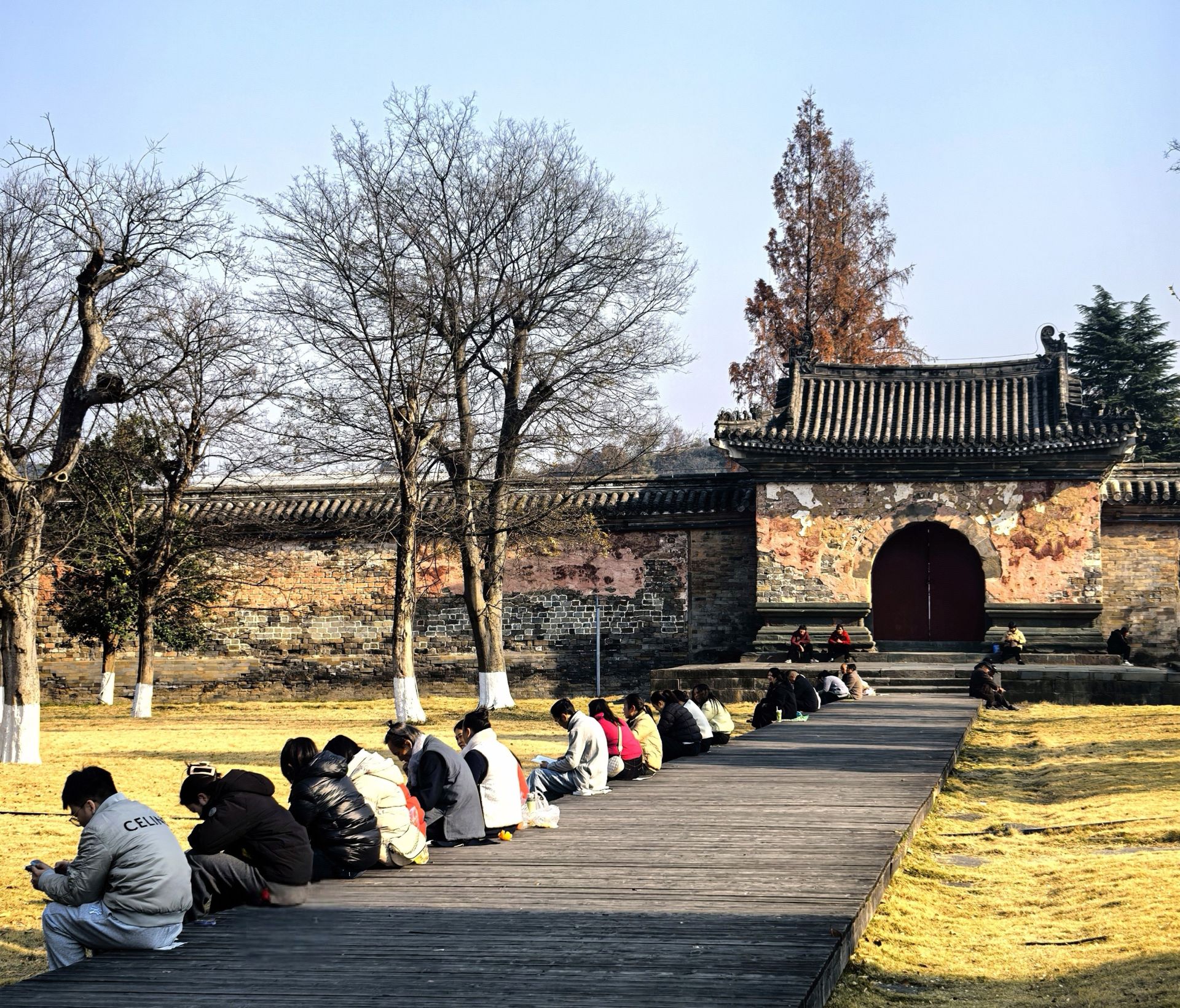 冬阳和煦,有的市民与三两好友围坐闲话家常,爽朗笑声随风传开;有的手捧书卷静读,斑驳光影在书页上缓缓流转;有的踏着青石板路悠然漫步,享受慢时光;还有摄影爱好者举着相机穿梭其间,将古建的庄重与人物的灵动定格成一张张鲜活的画面。