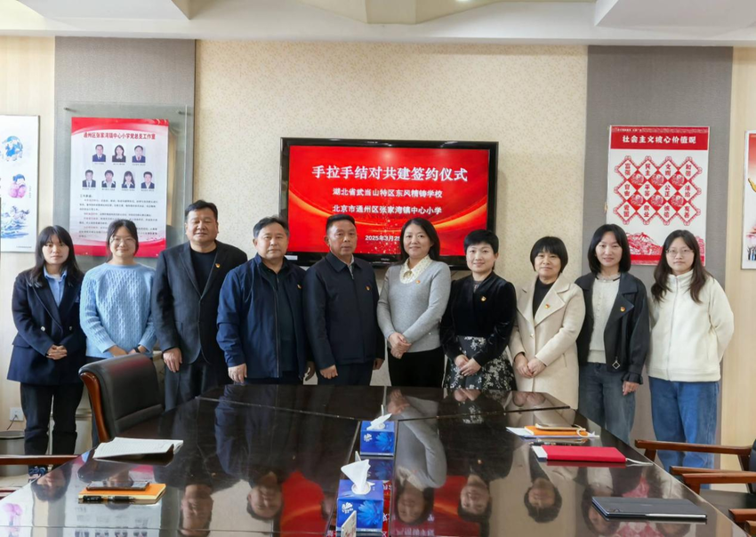 △2025年3月25日,武当山东风精铸学校与北京市通州区张家湾镇中心小学举行“手拉手结对共建签约仪式”。