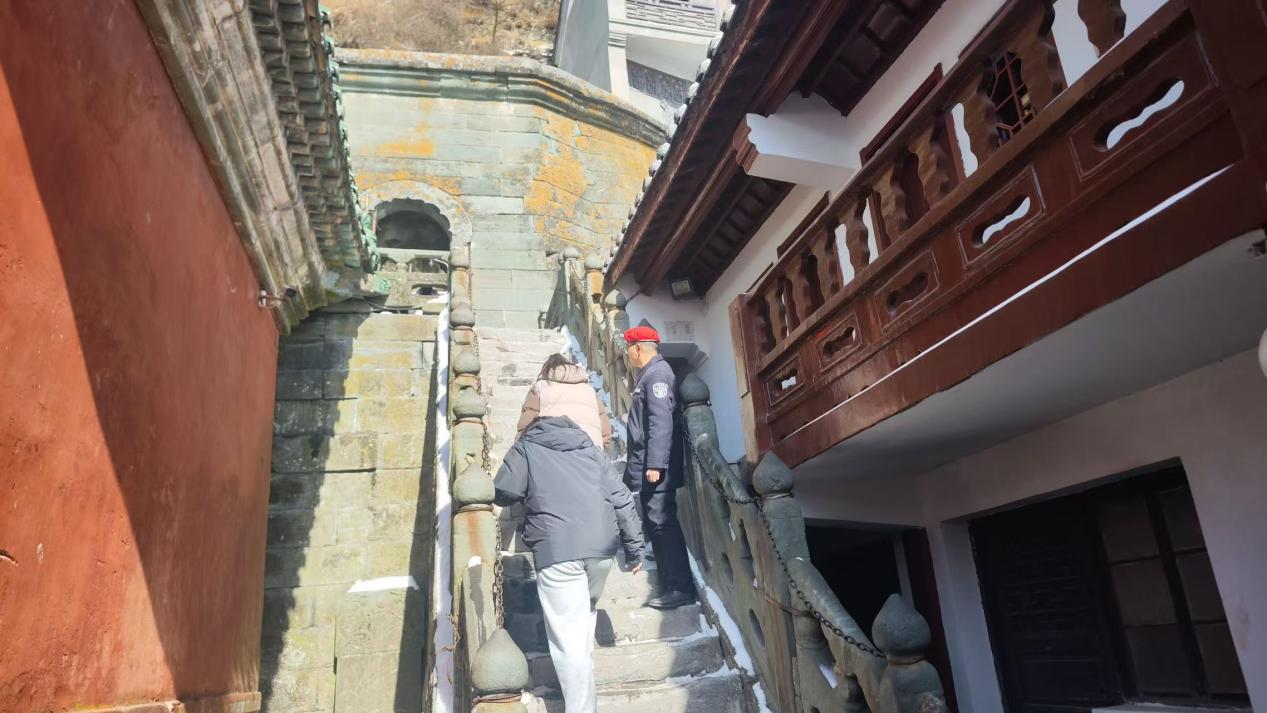 为确保开园后游览安全有序,景区办事处提前部署,组织“小红帽”志愿者、护林队员及环卫工人对景区公路、核心游步道开展多轮扫雪除冰“回头看”。在临崖急弯、台阶路段铺设防滑垫,增设安全警示标识,同步启用广播系统循环播报防滑提示,全力消除通行隐患。