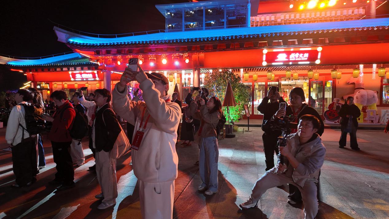 夜幕降临,达人团乘车来到《武当一梦》演艺园区,对特色夜游演艺的精彩内容进行全程拍摄,梳理实用游玩攻略,重点推介武当山夜游经济新业态。