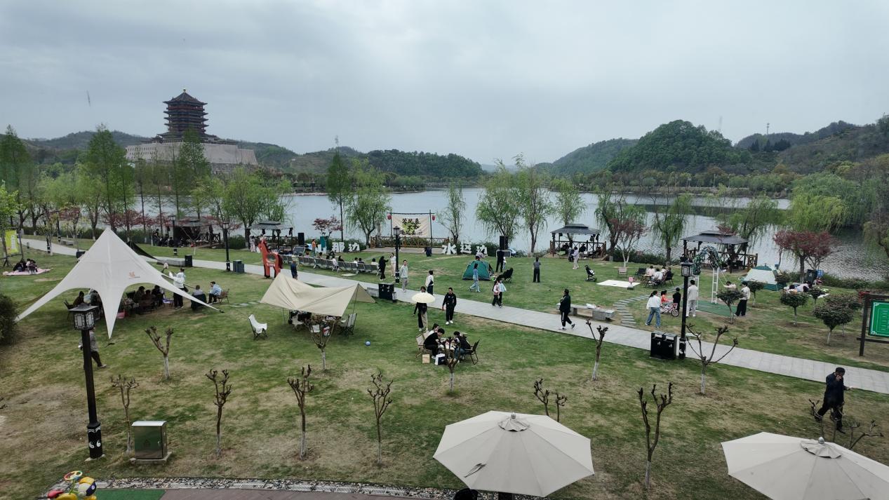 4月4日,清明假期首日,武当山太极湖畔太和武当书院吸引了大批游客前来露营、欢唱、度假,尽情享受各类休闲乐趣,沉浸式感受春日美好与武当文化魅力。
