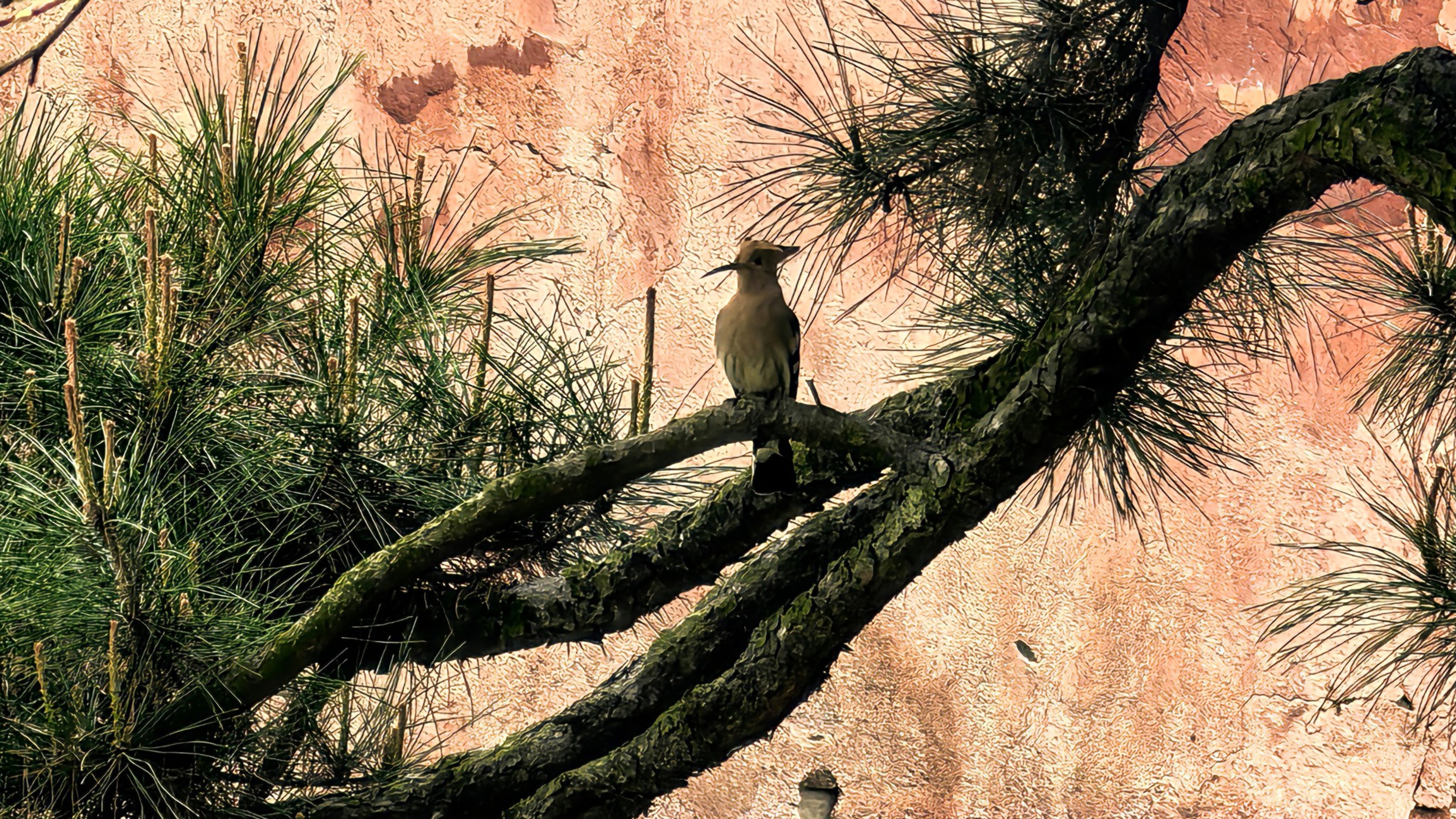 戴胜鸟外形雅致,头戴华丽“羽冠”,身披黑白相间的斑马纹,不仅寓意吉祥,更有着深厚的文化内涵,在我国被誉为“蚕桑之神”“报春鸟”。这几只戴胜鸟时而在宫观古树下踱步觅食,时而展翅掠过红墙,时而飞上枝头四处观望,灵动姿态与古朴建筑相映成趣,构成一幅人与自然和谐共生的唯美画面。